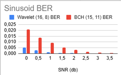 Сравнение кодов по BER при синусоидальных шумах, превосходство до 390%